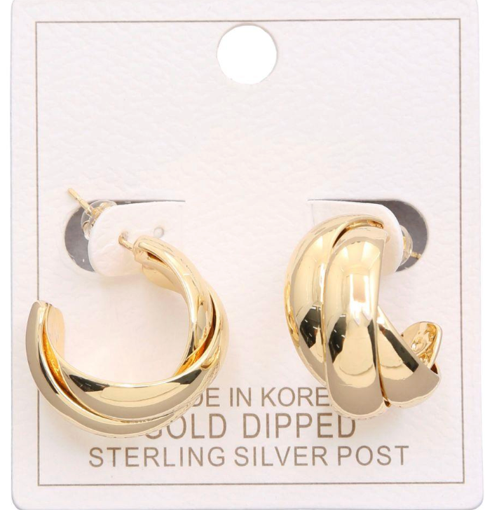 A sculpted, chunky mini hoop crafted in a polished gold-dipped, water-resistant finish for shine that lasts. Its bold curved shape brings a modern, elevated look that pairs effortlessly with everything from casual knits to dressy holiday outfits. Lightweight, sleek, and designed to make a statement without the weight.