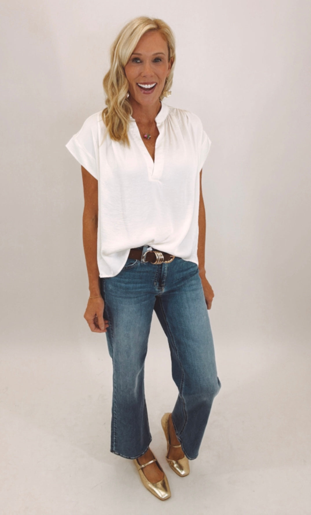 Light, airy, and effortlessly chic, the off white Breezy Escape Top is your new go-to for easy style. Featuring a relaxed fit, cap sleeves, and a subtle split neckline, this versatile blouse transitions seamlessly from casual days to polished evenings. The fluid drape offers comfort without sacrificing style, making it a wardrobe essential.