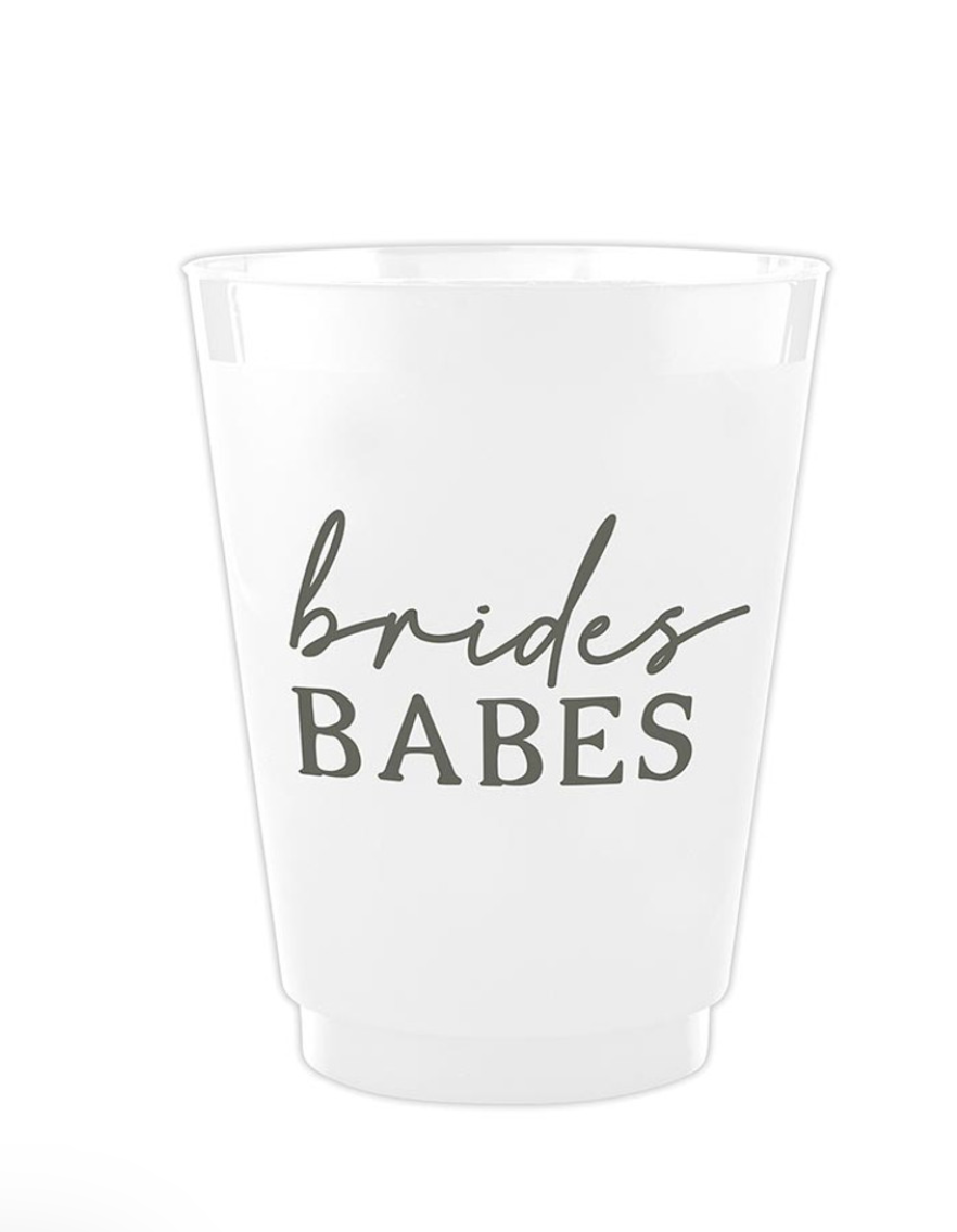 Frosted party cup with a bold "Bride's Babes" print, perfect for celebrating the bride and her crew.