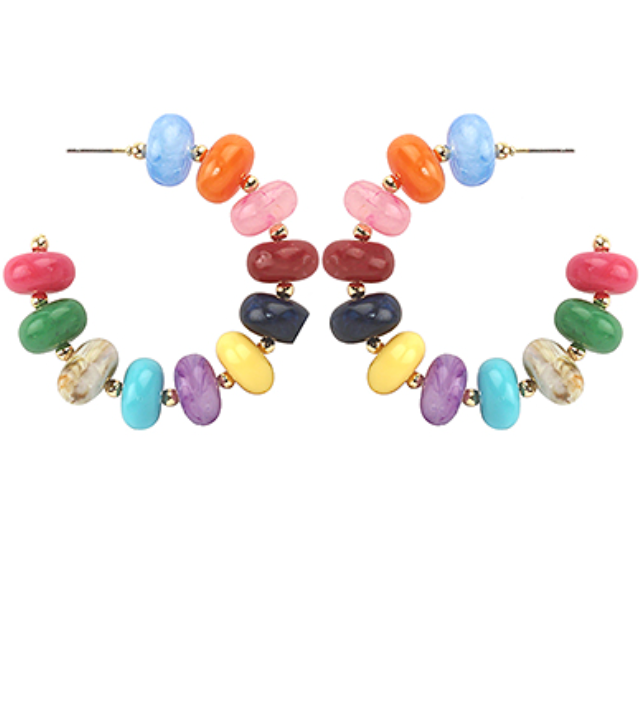 Cheerful, colorful, and easy to wear, the Bright Side Hoop is all about feel-good style. Featuring a mix of smooth, glossy beads in a vibrant rainbow of hues, these hoops bring playful color and personality to any outfit. Finished with subtle gold-tone accents, they feel polished while still being fun.