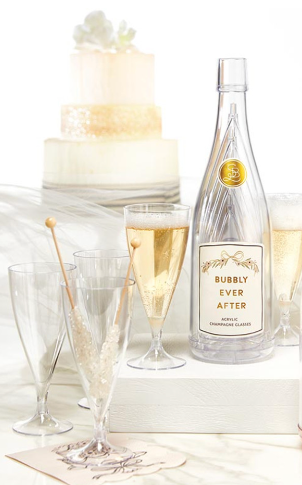This all in one set is perfect for your Wedding Celebrations! Simply place the base of each glass into the stem and you are ready to pour and party!