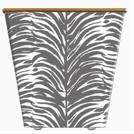 * Dimensions: 5 1/2" square at top rim, 3 5/8" square at base, and 5" tall * Handcrafted of composite material, wrapped in decorative paper, and finished with a burnished gold rim — four protective pads support its base.