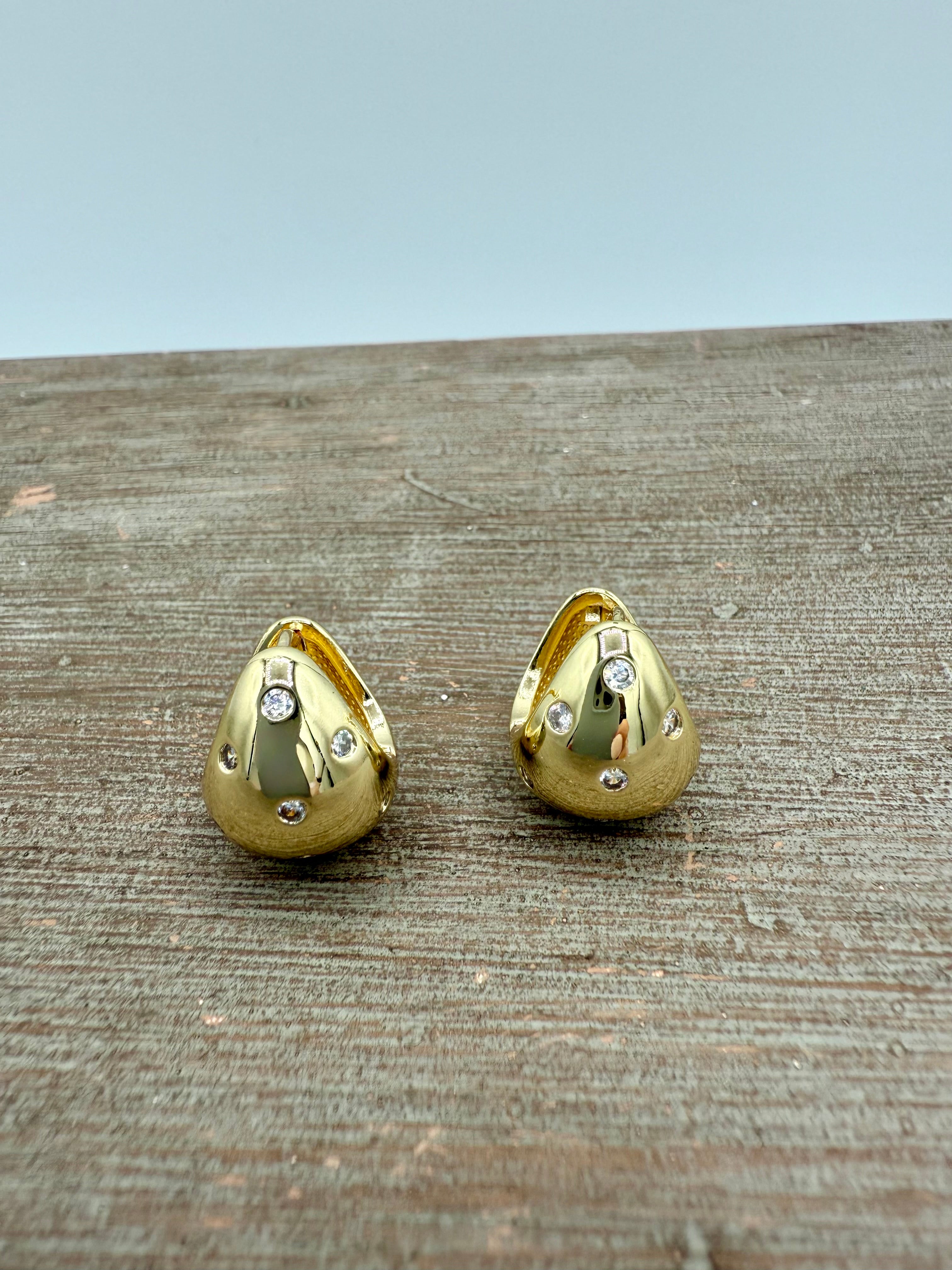 The Celeste Huggie blends bold shape with refined sparkle, offering a modern twist on a timeless favorite. Crafted from polished brass and finished with delicate crystal accents, these hoops catch the light beautifully without overpowering your look. The sculptural curve gives them a touch of luxury—perfect for dressing up a white tee or completing an evening ensemble.