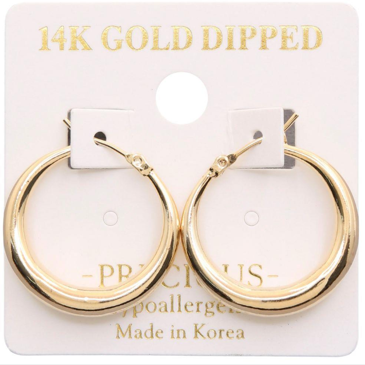 Timeless and versatile, the Classic Shine Hoop is crafted with 14K gold-dipped finish for a luxe, polished glow. Measuring approximately 1.25", these medium-sized hoops strike the perfect balance between bold and effortless, making them a must-have accessory for everyday wear or a night out. Lightweight and hypoallergenic, they’re designed for all-day comfort without sacrificing style.