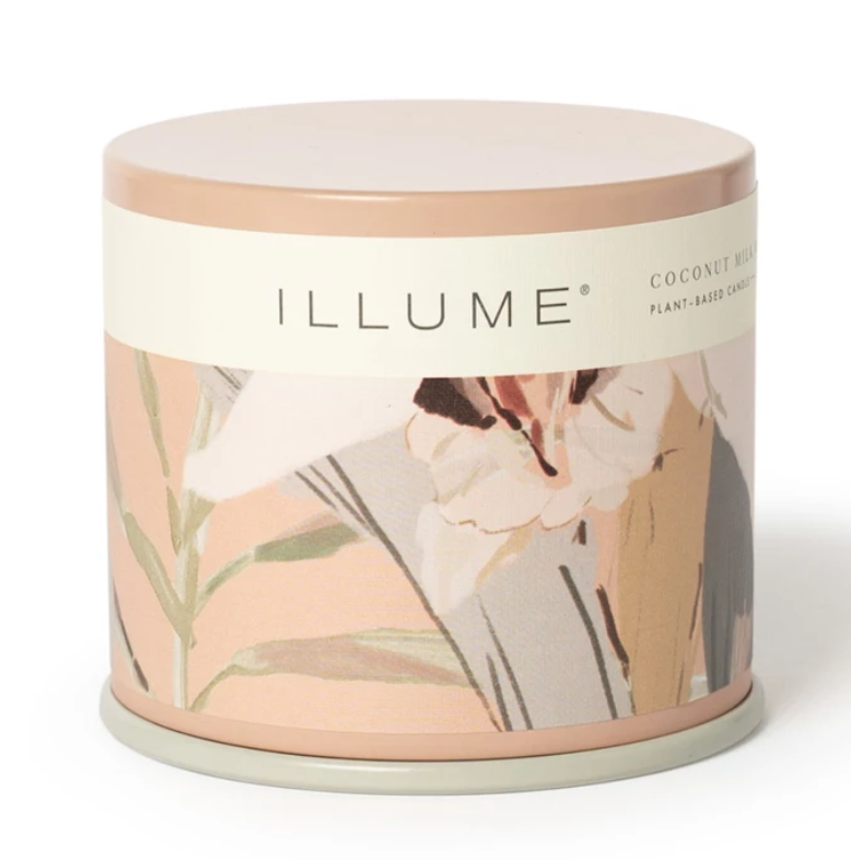 This scent is grounded in milky coconut, with a hearty of freshly sliced mango, and kissed with Tahitian vanilla. Designed as a pop of pattern, our large vanity tins have a full wrap label on textured stock, interior pattern with metallic details, and a color rolled edge to complement the colored wax. Tin is infinitely recyclable. Plant-based scented candle. 100% vegan and cruelty-free. Burn time up to 50 hours.