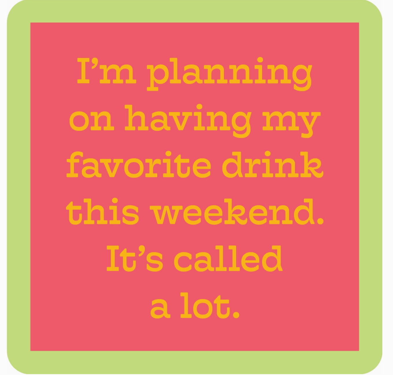 Coasters are 4”x 4” resin with cork backing and round corners. Made in the USA.