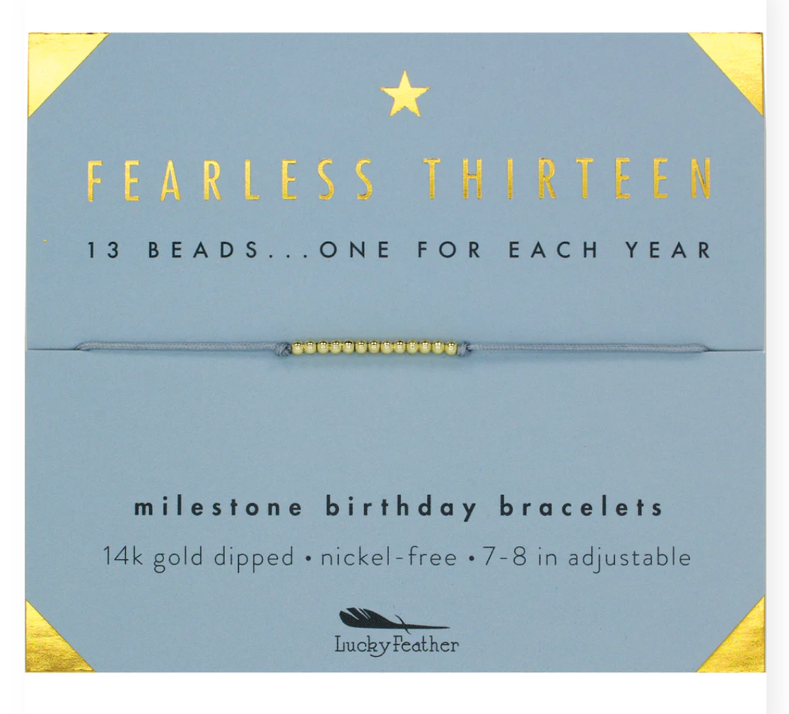 This dainty bracelet is the perfect way to celebrate any fearless thirteen-year-old’s birthday. There are 13 beads, one for each remarkable year of life!