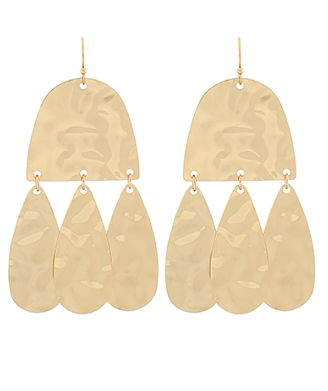These bold 2 ¾" hammered gold statement earrings bring serious movement and major retro flair. With their cascading abstract shapes and disco-daydream energy, they were made for dancing under string lights or soaking up compliments.
