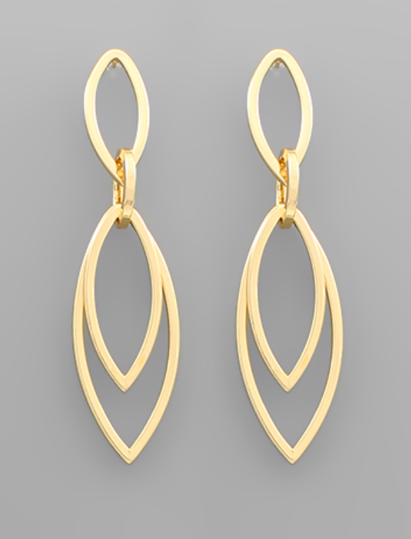 Sleek and sophisticated, the Gilded Petal Drop Earrings feature layered marquise-shaped frames that cascade in a modern, openwork design. Measuring 2.5 inches long, they’re lightweight yet eye-catching, perfect for adding movement and shine to any outfit.