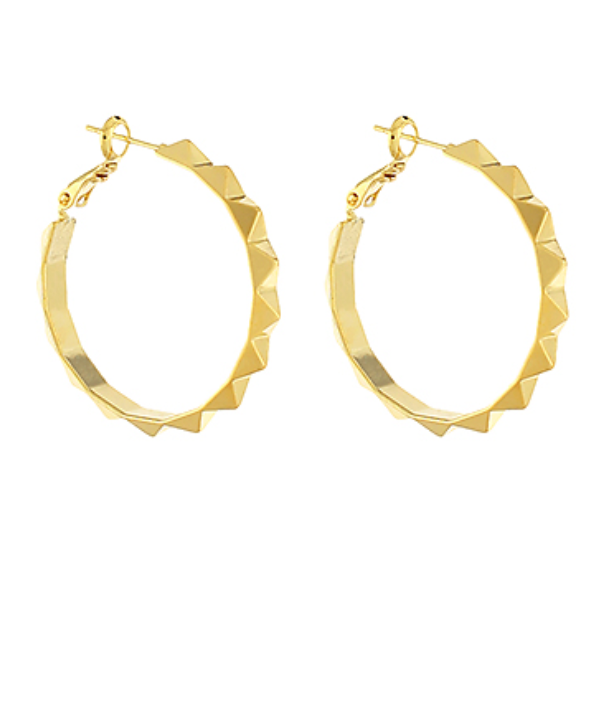 Add an edge to your everyday with the Gold Rush Hoop. These 1 ¼" gold-toned hoops feature a sleek pyramid texture that gives just the right amount of attitude. Structured, sculptural, and totally wearable—these aren’t your average hoops.