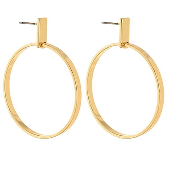 Sleek and minimal, the Golden Axis Hoops are a timeless accessory you’ll reach for again and again. With a modern square post detail leading into a clean 2" round hoop, these earrings strike the perfect balance of classic and contemporary. Lightweight yet bold, they elevate both casual and dressy looks effortlessly.