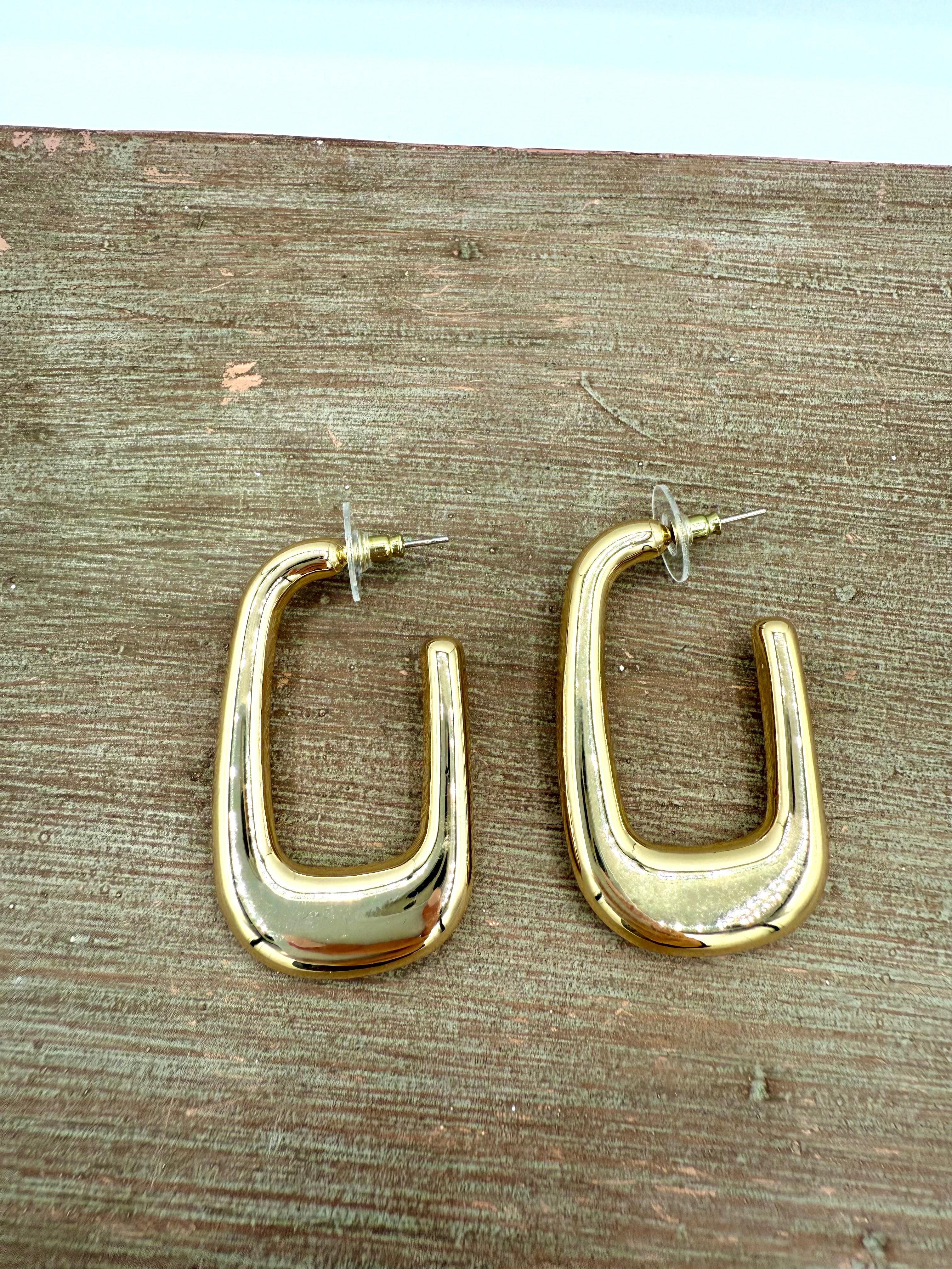 The Golden Frame Earring adds a sculptural twist to your jewelry lineup. With its bold rectangular curve and glossy gold finish, this piece strikes the perfect balance between modern minimalism and statement style. Water resistant and lightweight, it’s an effortless upgrade to any outfit — from casual denim to sleek evening looks.