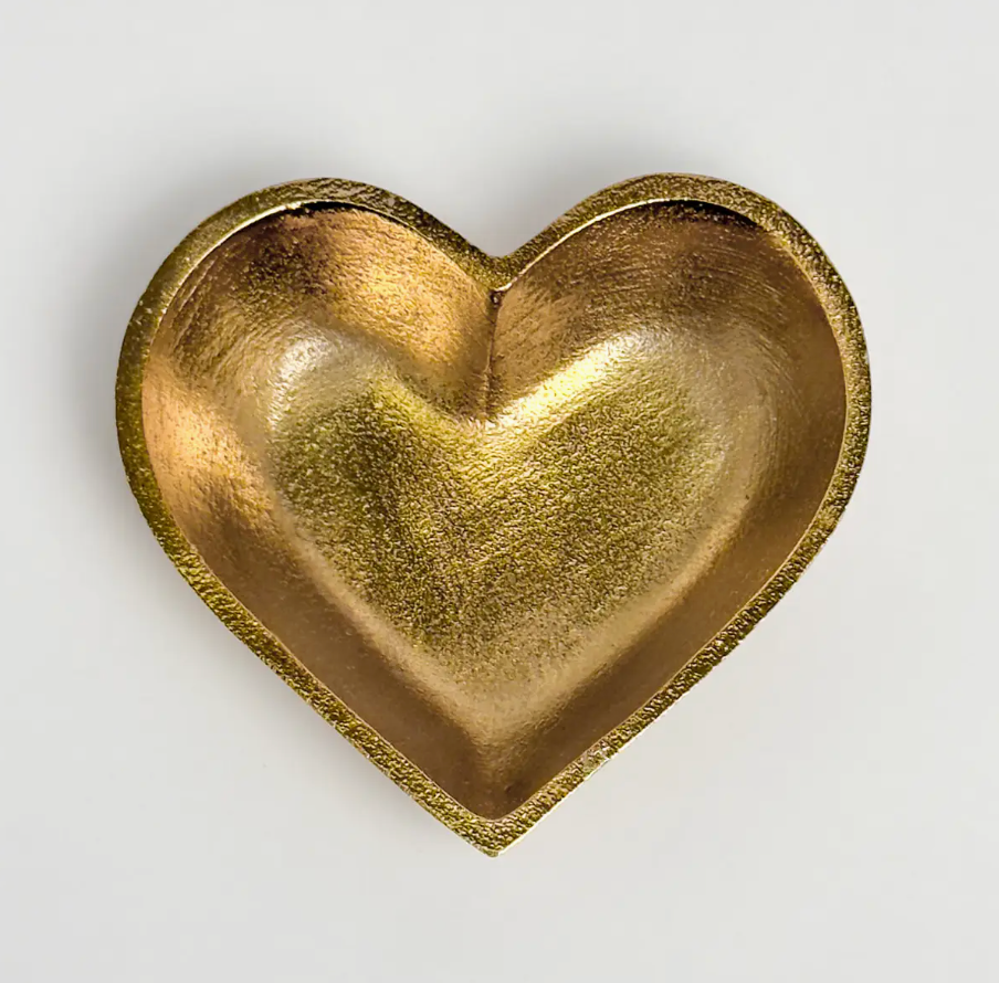 Bring a little love and luxury to your space with the Golden Heart Trinket Bowl. Handcrafted from gold-finished aluminum with a textured sheen, this sweet heart-shaped dish is perfect for holding jewelry, keys, or treasured keepsakes. Its radiant finish makes it both a functional catchall and a chic decorative accent.