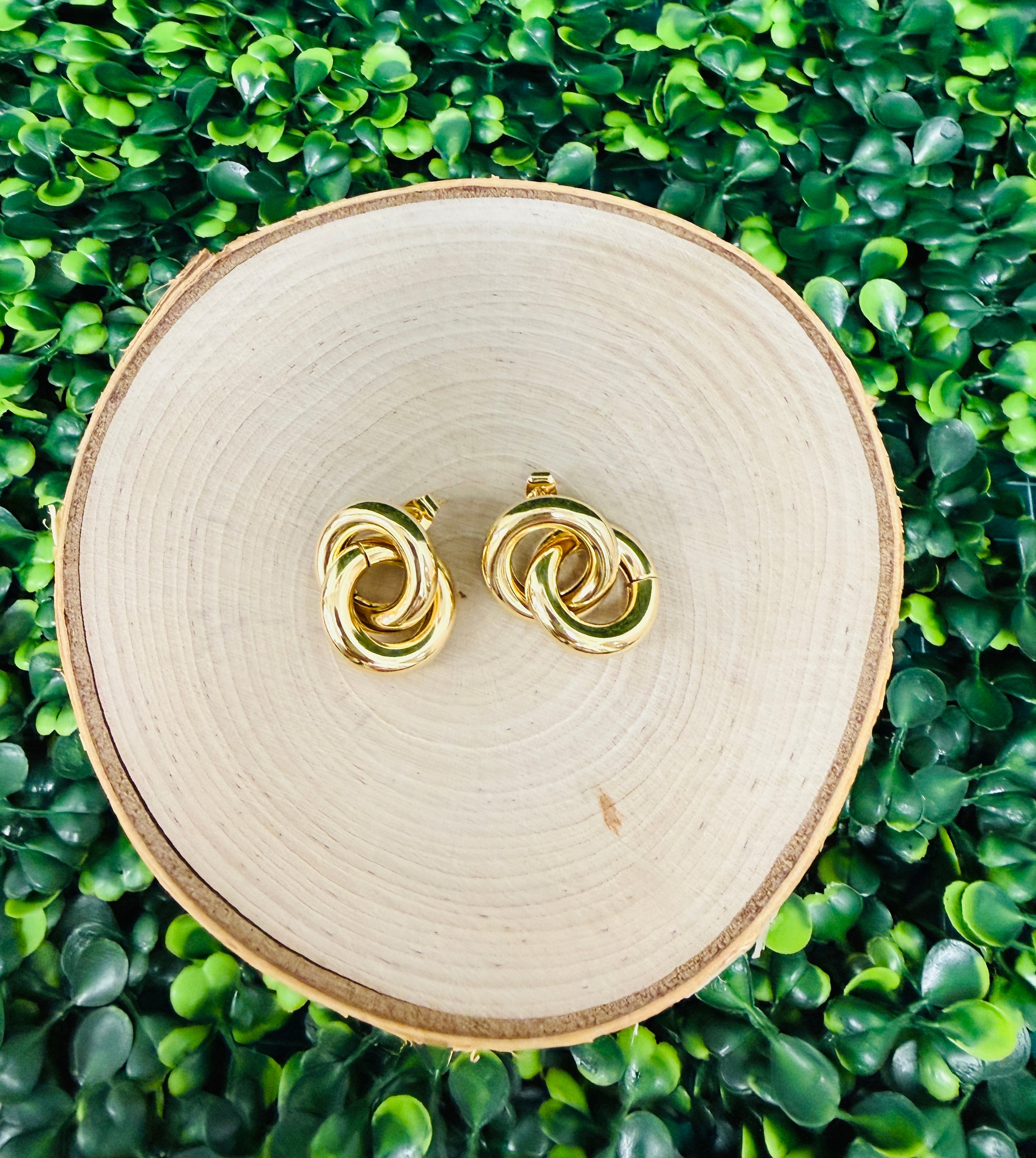 A modern classic with a bold twist. These interlocking stud earrings feature a high-shine, 14K gold dipped finish that adds instant polish to any look. The linked design gives the feel of elevated edge while still being easy to wear day or night.