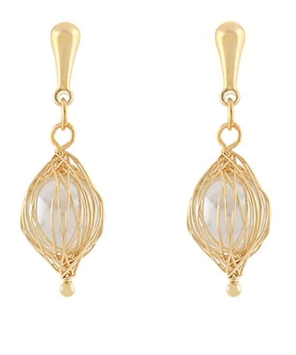 A timeless design with a touch of modern artistry—our Golden Nest Pearl Drop earrings feature luminous pearls delicately wrapped in gold-filled wire, creating the look of a pearl cradled in its own golden nest. Lightweight yet eye-catching, these drops bring an elegant shimmer and an organic, handcrafted feel to your jewelry collection.