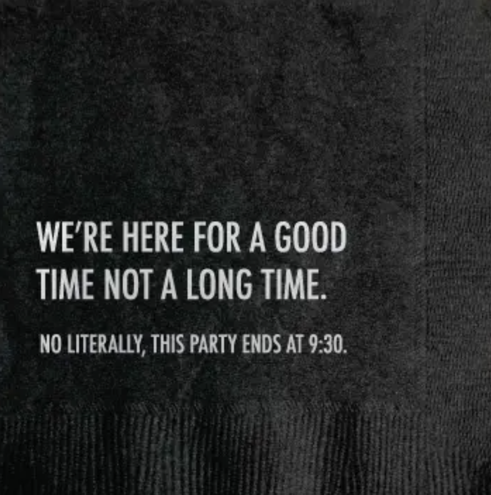 Quality is always better than quantity. Let’s make the good times last (less than 3 hours)! Encourage your guests to get lit then get out with these premium foil stamped napkins. 3-ply