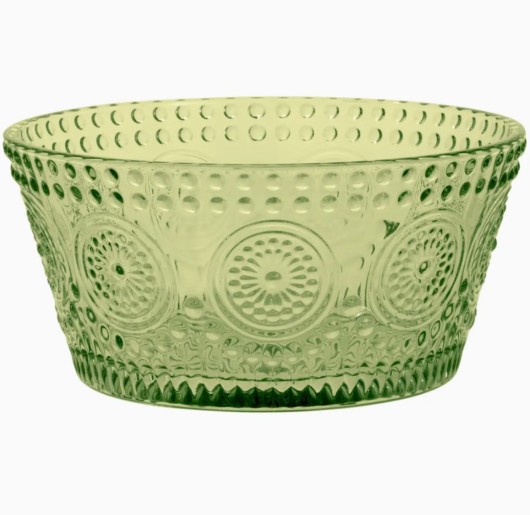 Add texture and style to your fall table with the Green Codi Glass Bowl. Featuring a studded design that catches the light beautifully, this 4.75-inch round bowl is both functional and decorative. Perfect for serving snacks, holding trinkets, or layering into your seasonal décor, it brings a modern yet festive touch to any space.