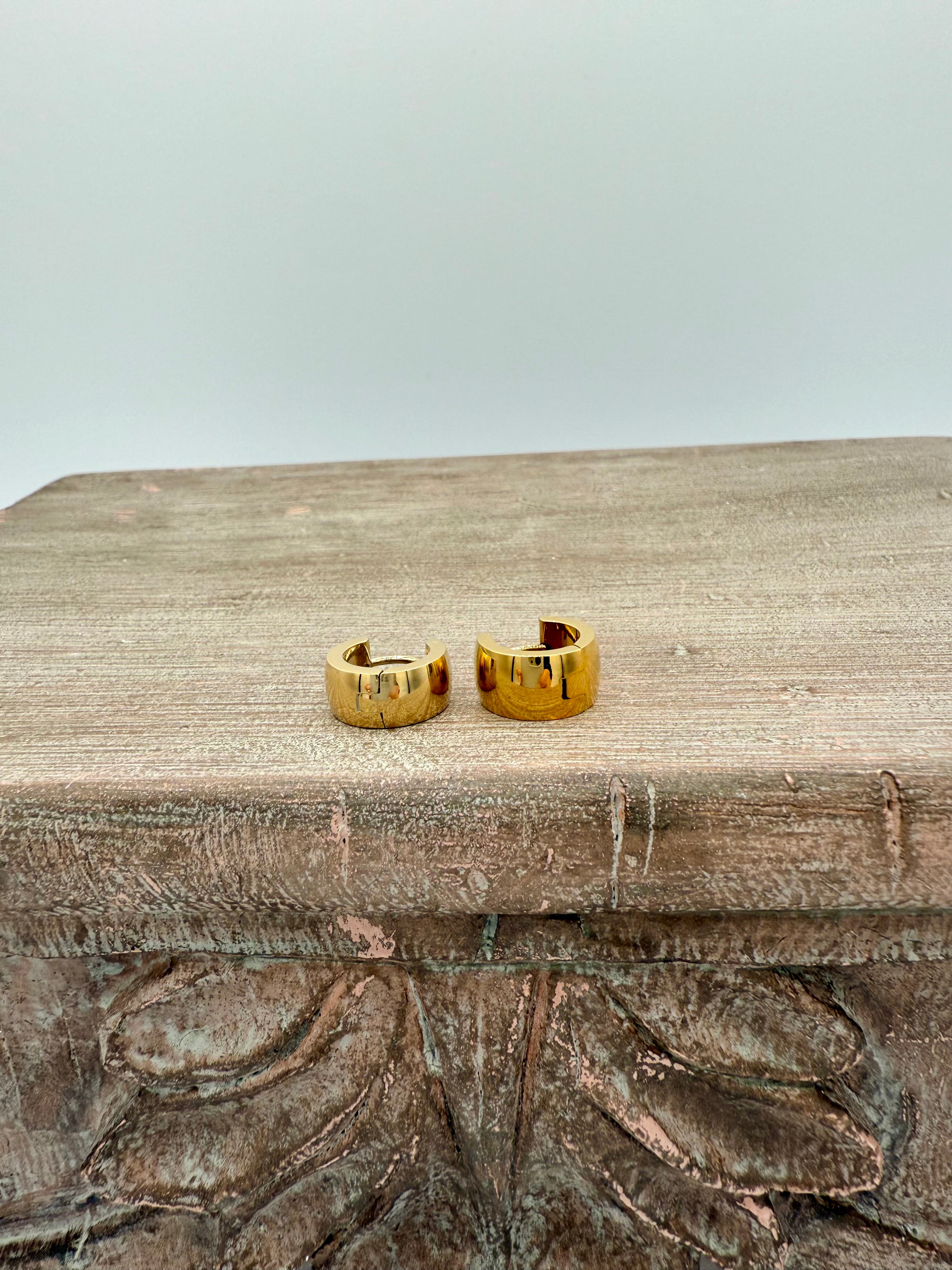 The Hayes Huggie is a sleek, sculptural take on a classic gold hoop. Designed with a modern curved silhouette and a polished finish, this water-resistant pair delivers just the right amount of shine for everyday sophistication. Lightweight and versatile, they’re made to complement every look—from casual to elevated.