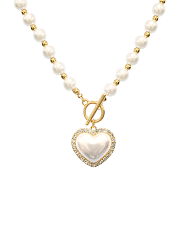 A romantic statement with a timeless feel. This pearl beaded necklace features a front toggle closure and a luminous heart pendant framed with subtle sparkle. Equal parts classic and eye-catching, it’s the kind of piece that instantly elevates even the simplest outfit.