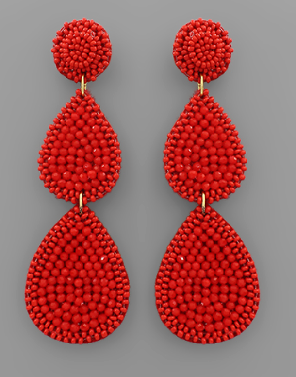 Bring the festive sparkle with these stunning 3.5" beaded statement earrings. Designed with layered teardrop silhouettes and rich holiday red beads, they add instant cheer to any look. Lightweight yet full of presence, they’re the perfect way to elevate your seasonal style — from casual gatherings to glam holiday soirées.