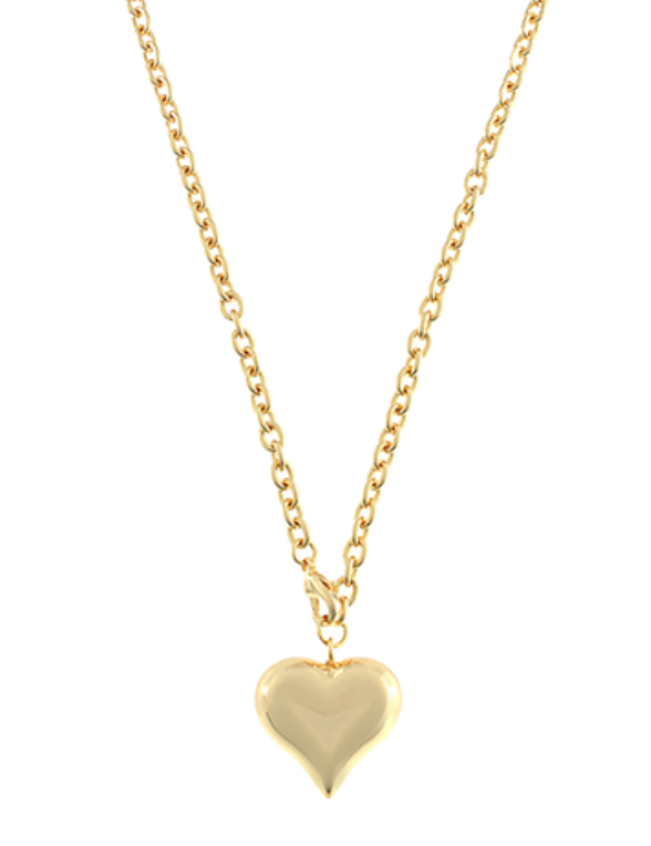 Sweet, simple, and full of shine — the Honey Heart Necklace adds the perfect golden touch to any look. Its 16" gold chain features a smooth, puffed heart pendant that gleams with warmth, like liquid sunshine. Whether worn alone for an understated statement or layered with dainty chains, it brings just the right amount of charm and glow.