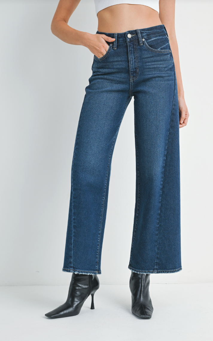 The HR Side Seam Wide Leg Jean gives classic denim a modern, polished update. With its flattering 11" high rise, 29" inseam, and subtle side seam detail, this style delivers that sleek, lengthened look you love. The dark wash adds a touch of sophistication, while the raw hem keeps it effortlessly cool. Made from a soft stretch blend (93% cotton, 5% polyester, 2% spandex), it’s designed to move with you without losing its shape.