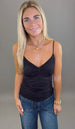 The Everyday Essential Cami is your go-to for layering or lounging. With a flattering shirred bust and ultra-thin straps, this cami hugs in all the right places thanks to its buttery-soft jersey knit. Designed with a double layer for extra coverage and comfort, it’s available in classic black and white. One size fits most, thanks to its ultra-stretchy fit that moves with you.