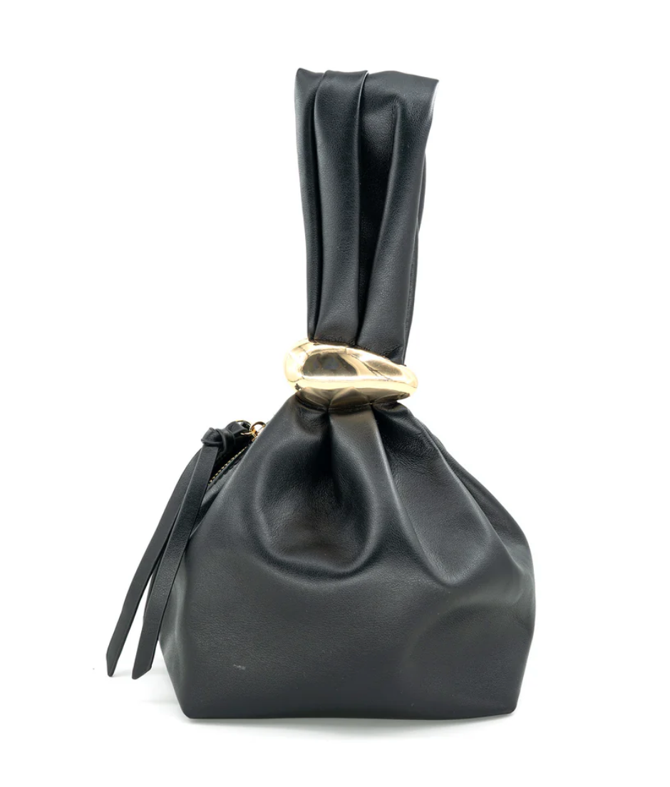 Sleek, structured, and totally statement-making, The Knotting Hill Bag is where modern minimalism meets a touch of gold glam. Designed in soft, supple vegan leather, it cinches at the top with a sculptural gold knot accent that doubles as both art and hardware. Compact yet roomy enough for your small essentials, this 6 x 6 x 5-inch stunner adds instant polish to any outfit.