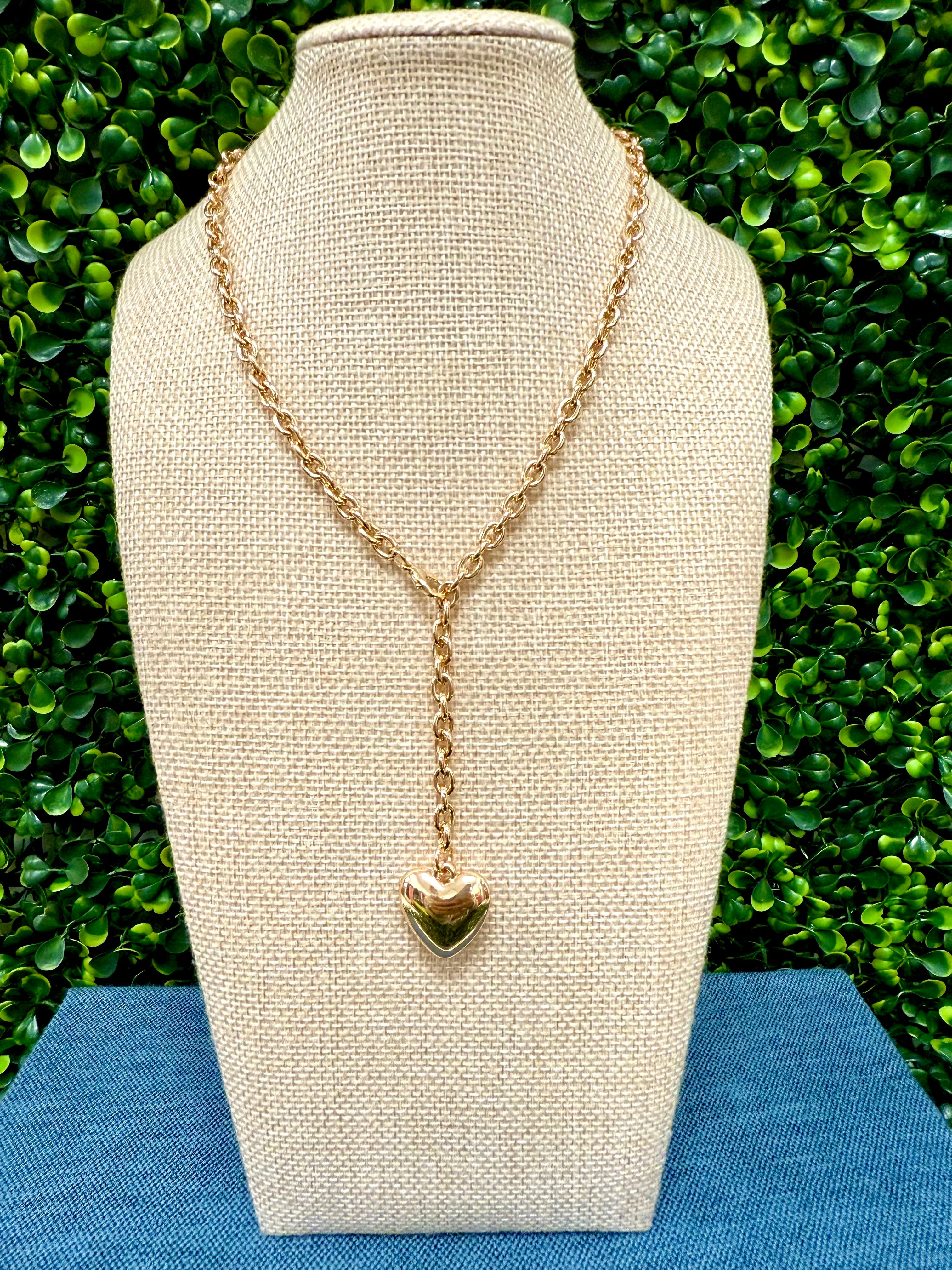 Fall for the Linked in Love Necklace — a modern twist on timeless romance. This 16" adjustable gold chain features a chic drop design finished with a glossy puffy heart pendant, symbolizing love that’s strong, stylish, and forever linked. Effortlessly elegant, it’s perfect for layering or wearing solo for a statement that speaks from the heart.