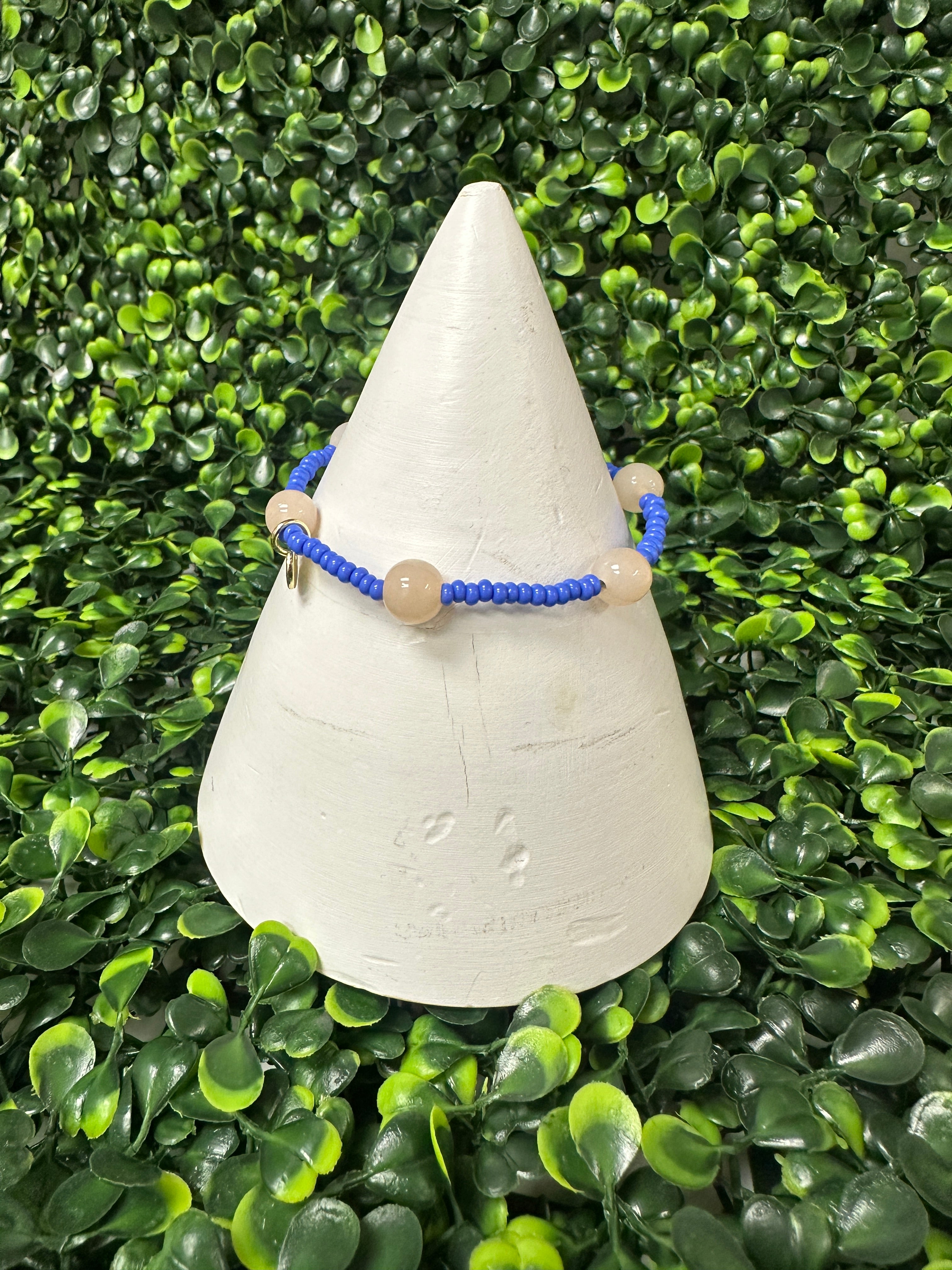 Dive into elegance with the Mia Small Seed Bead Stretch Bracelet in Royal Blue from the Rio collection. The mix of glass beads and round stones adds a touch of sophistication and versatility to your look. Mia is perfect for those who seek accessories that effortlessly transition from day to night.
