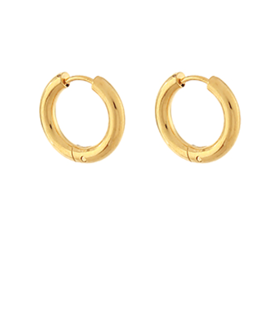 Effortless, elevated, and endlessly wearable — the Modern Muse Huggie is that perfect gold hoop you’ll reach for every day. Crafted from hypoallergenic stainless steel, these ¾-inch water-resistant huggies deliver shine that lasts with a sleek, sculpted silhouette. Lightweight yet bold enough to make a statement, they blend classic polish with modern simplicity.