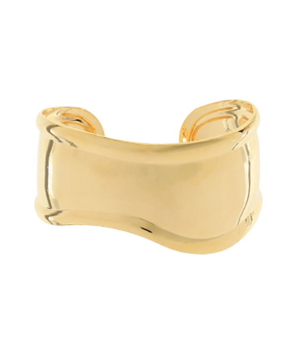The Molten Curve Cuff makes a bold yet elegant statement with its fluid silhouette and high-shine gold finish. Its gently sculpted, convex shape hugs the wrist in all the right ways—adding a luxe, modern edge to any look. Lightweight, easy to slip on, and designed to shine solo or stacked.