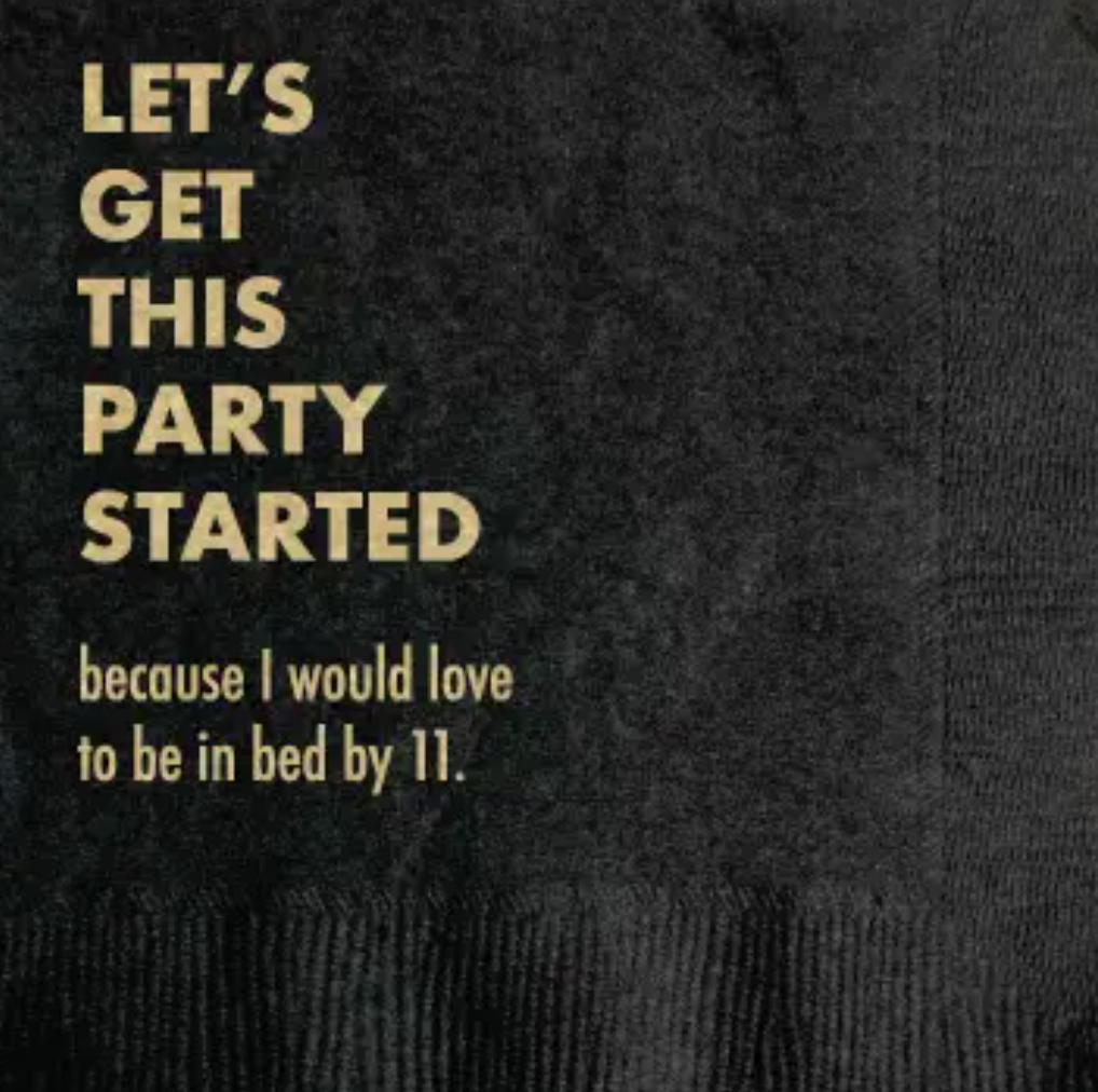 Some of us have bedtimes! And no, falling asleep on a basement couch is no longer an option. Encourage your guests to get lit, then get out with these premium foil stamped napkins. 3-ply (aka it feels fancy).
