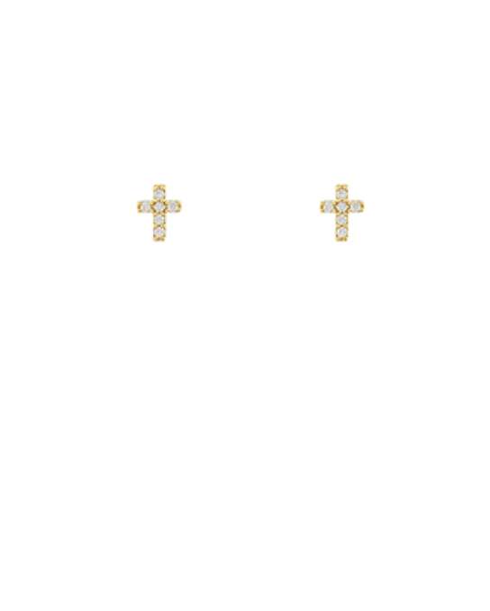 The Pavé Cross Stud Earrings feature a delicate cross silhouette lined with shimmering cubic zirconia stones for an elegant, light-catching finish. At just 3/8" long, they’re petite and polished — perfect for everyday wear or layering with your favorite hoops and huggies.