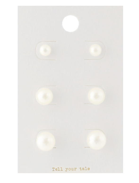 The Pearl Stud Set is a timeless trio designed to bring classic elegance to any look. Featuring three sizes — 3/16", 1/4", and 3/8" — these luminous faux pearl studs are versatile and chic, making them a jewelry box essential. Perfect for layering up your ear stack or wearing solo for a minimal, polished touch.