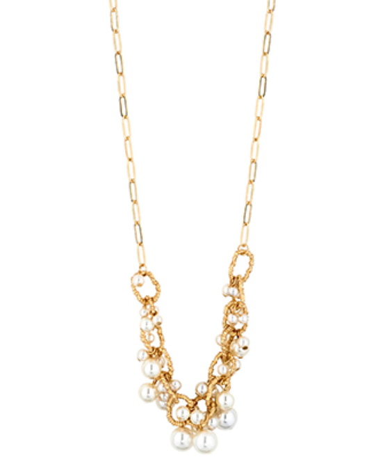 The Posh Cluster Pearl Necklace delivers instant sophistication with a touch of glam. Featuring a 16" gold-dipped chain adorned with clusters of luminous faux pearls, this necklace strikes the perfect balance between bold and elegant. Its intricate design makes it a statement piece you’ll reach for again and again.