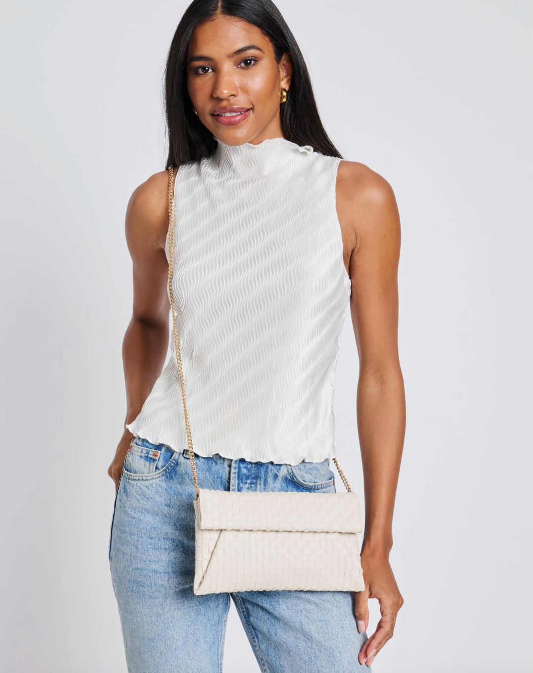 Elevate your ensemble with the Priscilla Clutch, a perfect blend of sophistication and modern style. Crafted from premium materials, this chic accessory features a woven texture that adds a touch of elegance, making it ideal for both day and night outings.