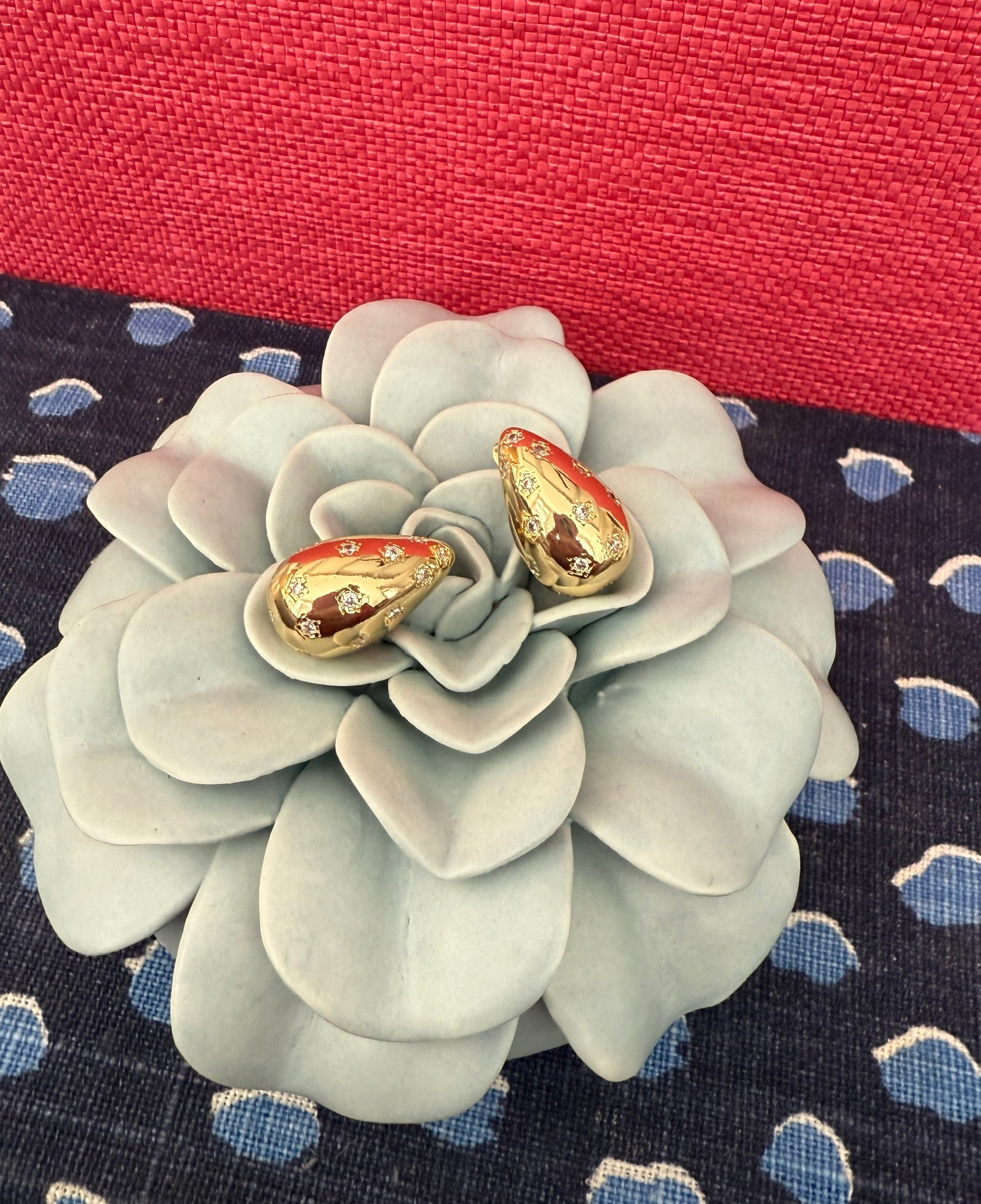 The Radiant Drop Huggie pairs sculptural shine with understated sparkle. Dipped in 18K gold and water-resistant for everyday wear, these teardrop-shaped huggies feature delicate crystal accents that catch the light beautifully from every angle. The sleek, modern silhouette makes them equally perfect for day or night — effortless elegance with a touch of glam.