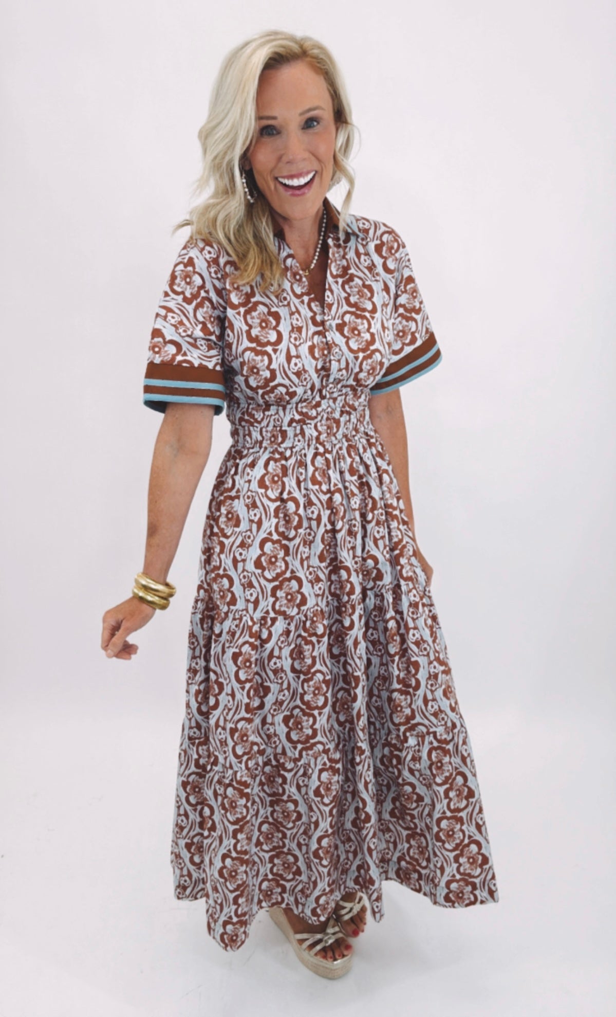 Style Tip: Pair with gold statement earrings and strappy sandals for brunch or layer with a cropped denim jacket and ankle boots when the temps dip.