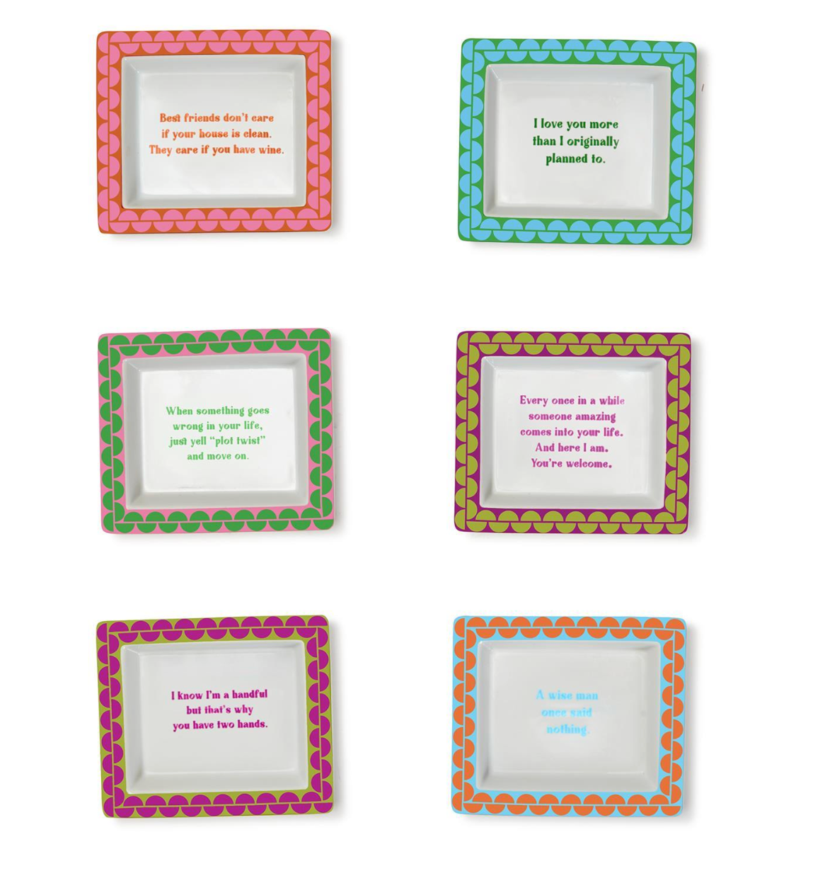 Small tray, big personality. The Sassy Wise Saying Tray is the perfect little pick-me-up for desks, nightstands, and home offices. Each porcelain tray features a colorful border and a witty, feel-good saying designed to make you smile every time you see it. Whether it’s holding post-its, paperclips, jewelry, or simply styled on its own, this tray adds just the right touch of charm and humor.