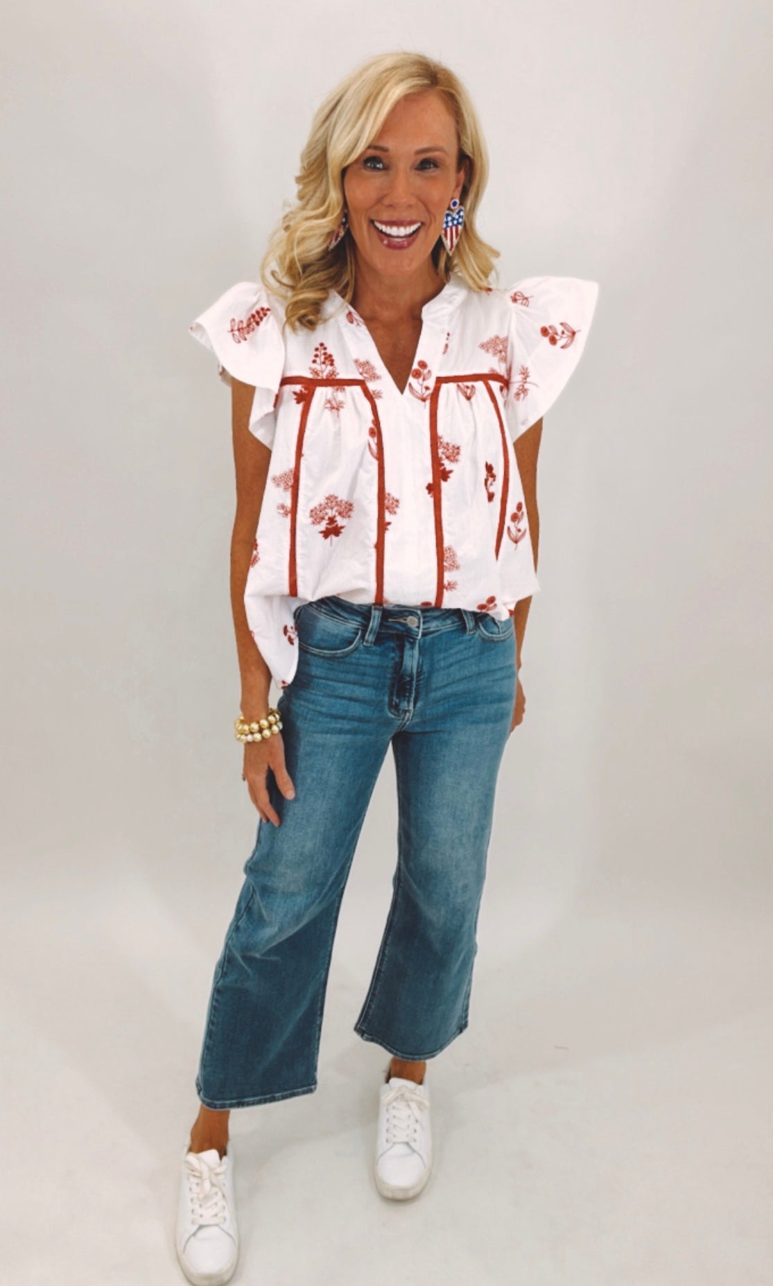 Sheila is 5’7”, weighs 130 lbs and wears a size 26 in jeans normally and is wearing a size 2. Finished hem on the legs.