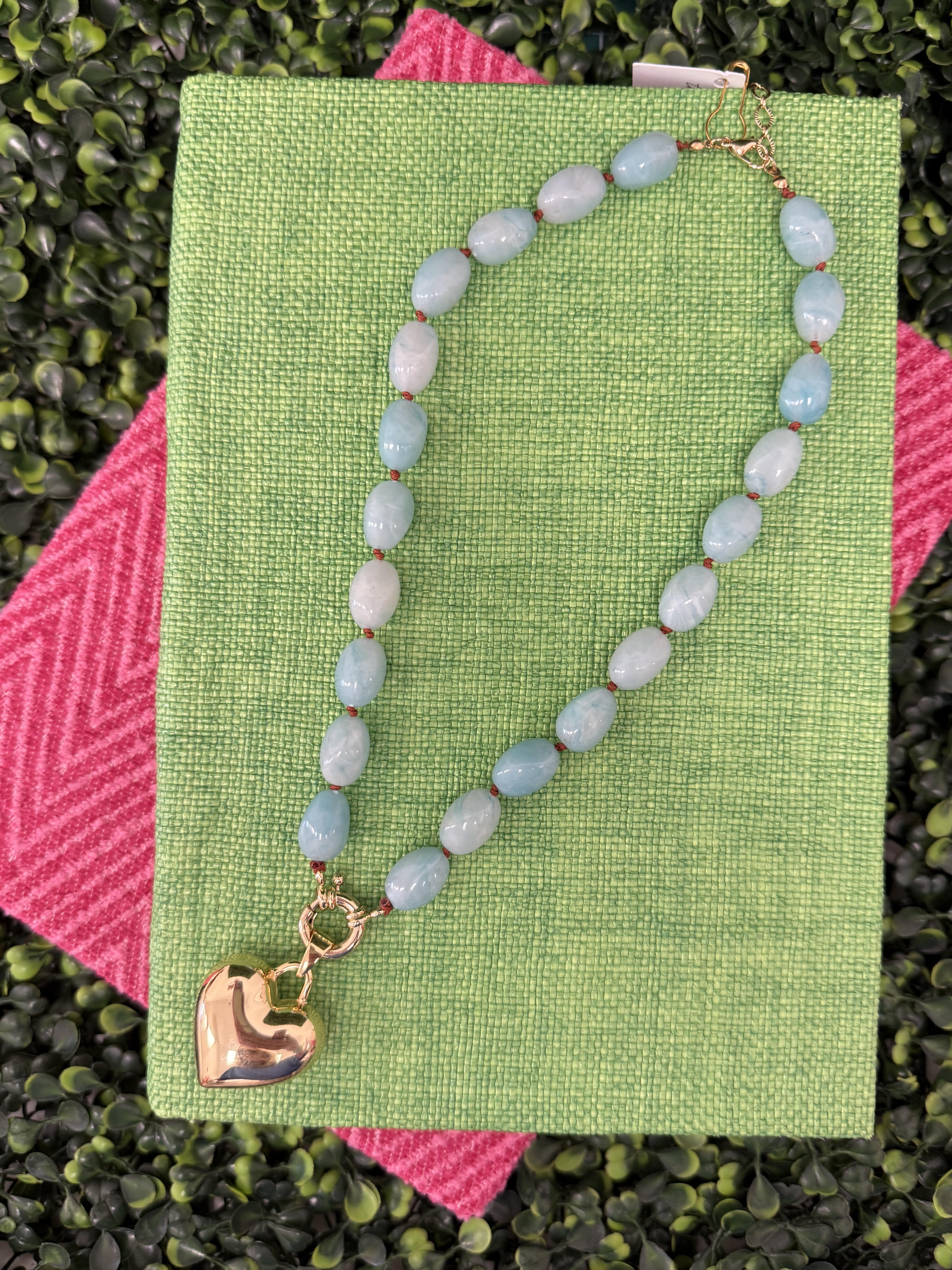 The Sea Glass Sweetheart Necklace is a dreamy mix of cool-toned glassy beads and a glossy gold puff heart charm that adds just the right amount of shine. At 16" long, this necklace is perfect for layering or wearing solo. The charm easily slips off, so you can pop it onto another chain or swap it for your fave from the charm bar.