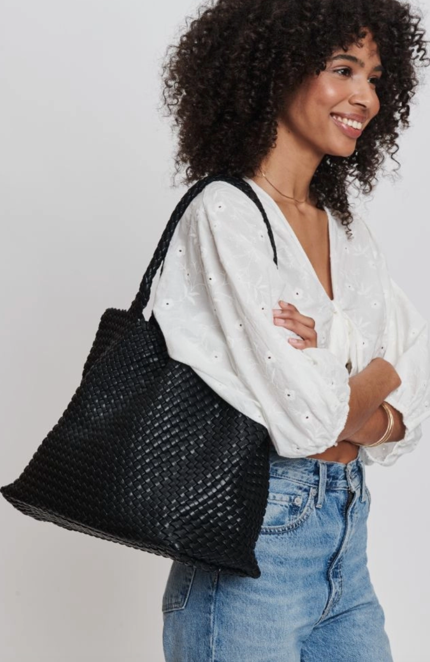 The Solana Woven Tote is the effortless carryall you’ll reach for again and again. Designed with a luxe woven texture and a roomy silhouette, this bag is perfect for everything from daily errands to weekend getaways. It comes with a removable matching pouch to keep your essentials organized and secure. Sleek yet practical, this tote blends laid-back charm with everyday functionality.