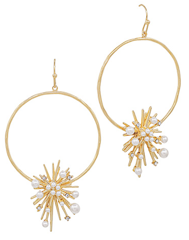These golden hoops feature a radiant pearl and crystal burst that swings with every move. At 2 1/4" long, they’re the perfect mix of playful and polished, giving your look a luminous edge without being over the top.