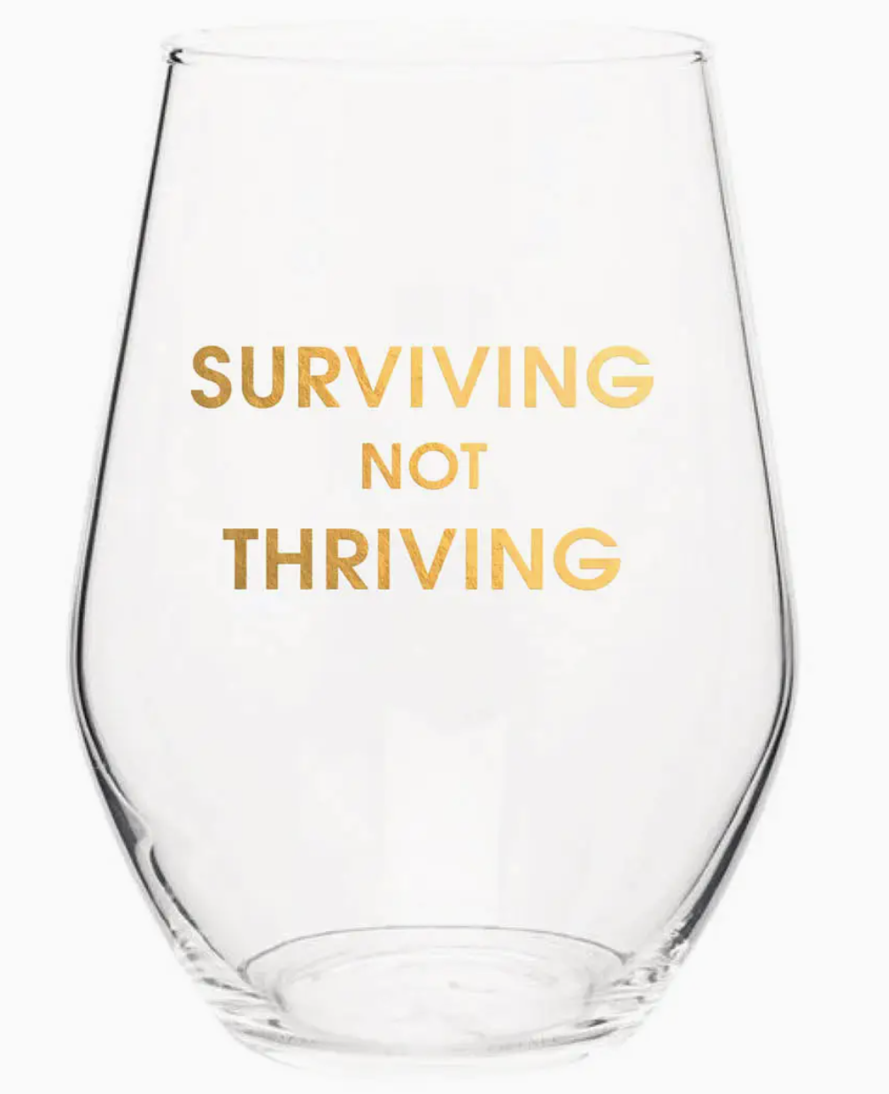You survived another day, this calls for wine with our gold foil 19oz stemless wine glass
