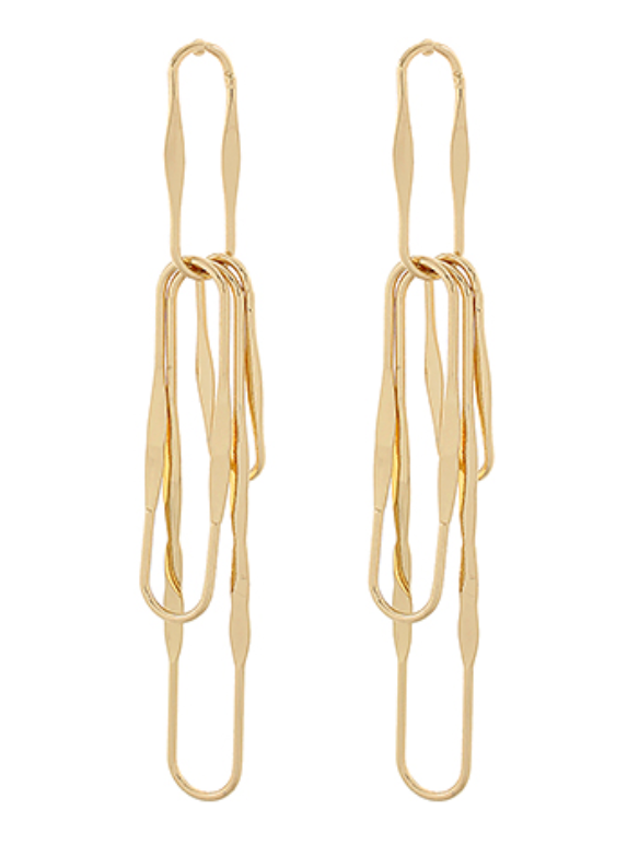 Bold, sculptural, and effortlessly chic — the Tangled Luxe Earring brings instant drama to any look. Crafted from 18K gold-filled brass, these 3¾-inch statement drops feature an intricate, interwoven chain design that sways with subtle movement and shine. Hypoallergenic and lightweight, they’re the perfect blend of glam and edge for your next night out.