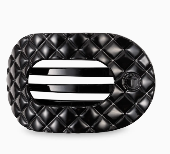 Lay flat and relax with the new TELETIES Jet Black Quilted Large Flat Round Hair Clip.