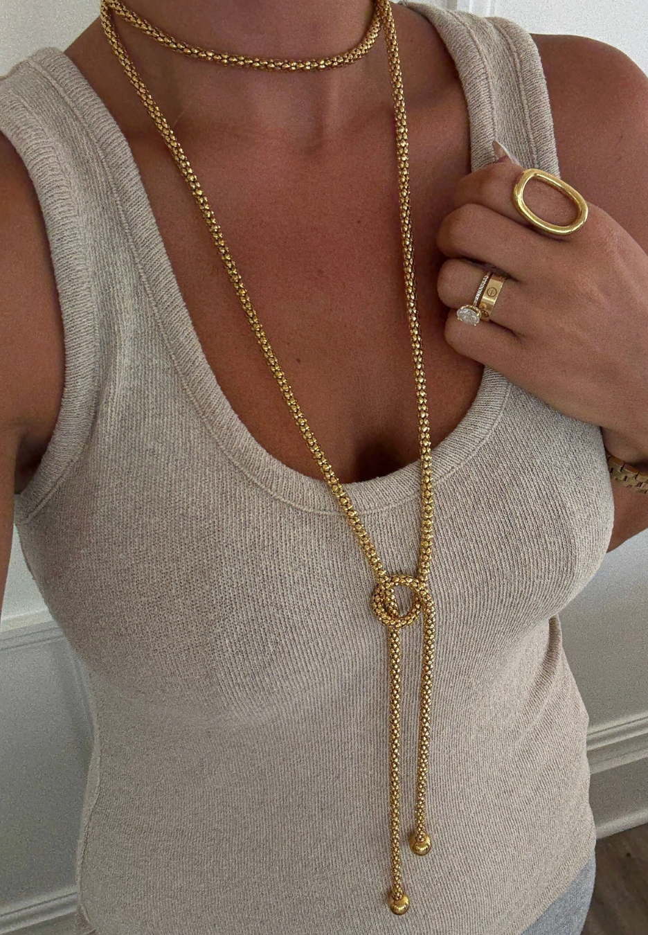 Wear it as a single long drop for a sleek evening look, wrap it twice for a layered effect, or knot it at the chest for a chic, fashion-forward statement. Pair with plunging necklines or over a simple knit to instantly elevate your outfit from effortless to extraordinary.