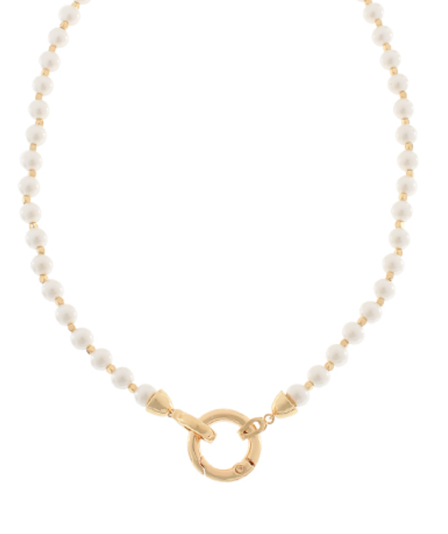 Classic with a twist, The Pearl About It Necklace features dainty pearls strung along a 16” chain with a statement gold circle clasp at center stage. The toggle-style closure adds modern edge to this otherwise timeless beauty—perfect for layering or wearing solo.