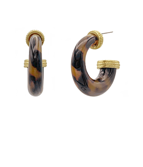 The Tortoise Glow Hoop blends timeless tortoise acetate with luxe golden accents for a modern classic. Measuring 1 1/4", these hoops are the perfect size for everyday wear while still making a statement. The warm tortoise tones paired with textured gold give them a radiant finish that elevates any look.